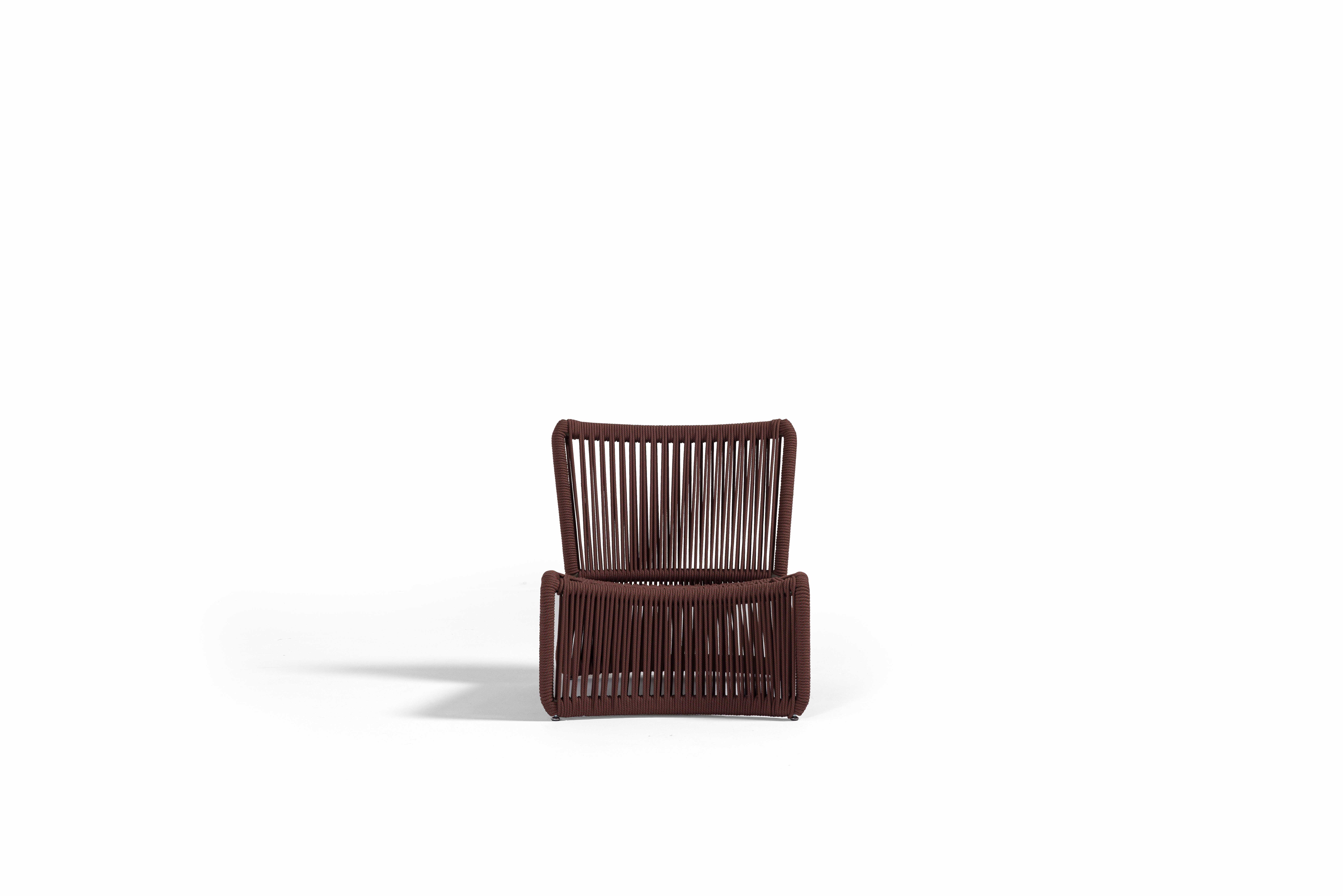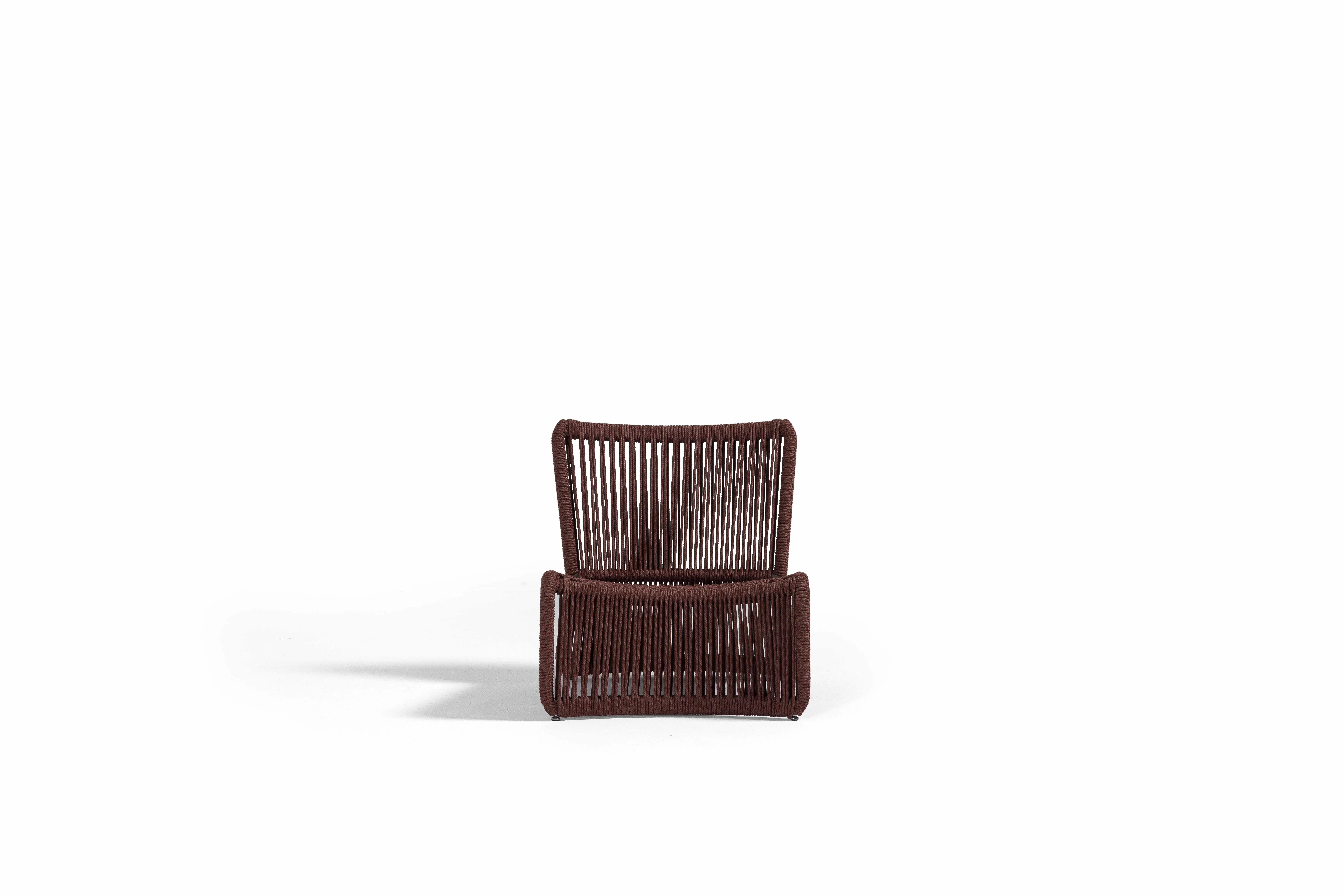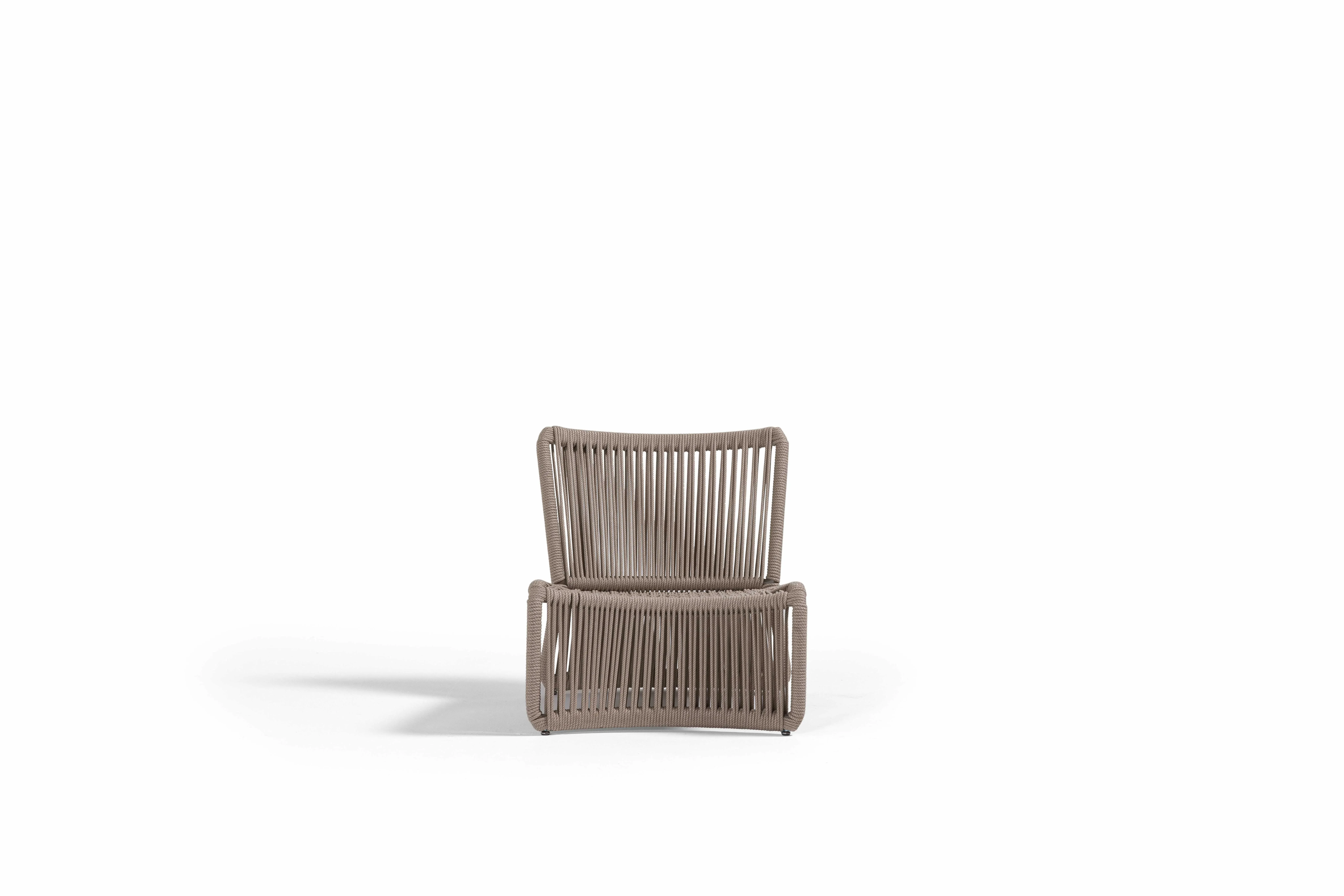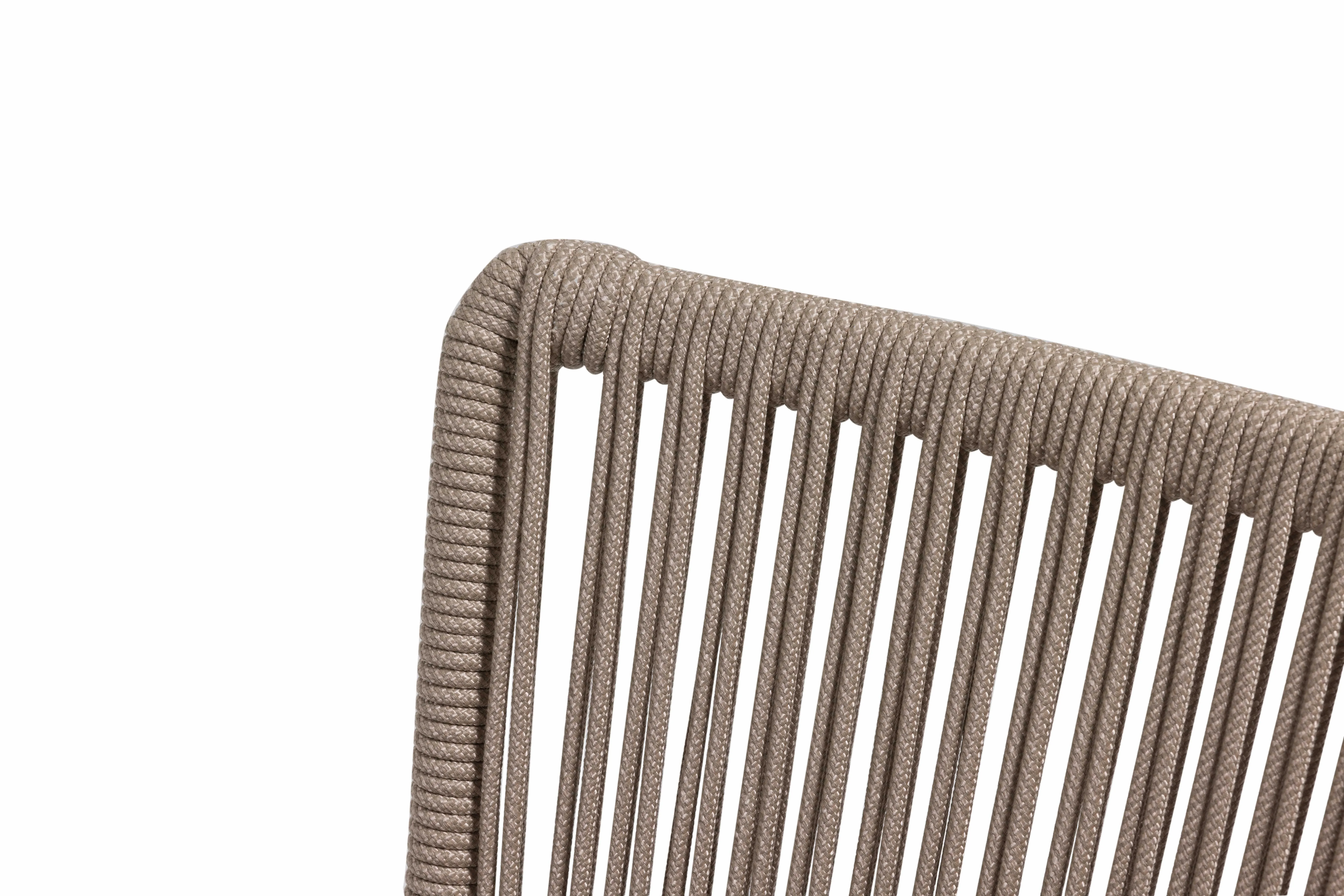 Bali, sahil hattının rahatlığını teras ve bahçelere taşıyan hafif, akışkan bir yorumdur. UV korumalı el örgüsü rope, formun karakterini belirler; oturumda bedeni yumuşakça kavrarken, dışarıdan bakıldığında çizgi gibi temiz bir silüet etkisi yaratır. İnce ama dayanıklı iskelet yapısı, zeminde adeta süzülüyormuş gibi duran bir hafiflik hissi verir.