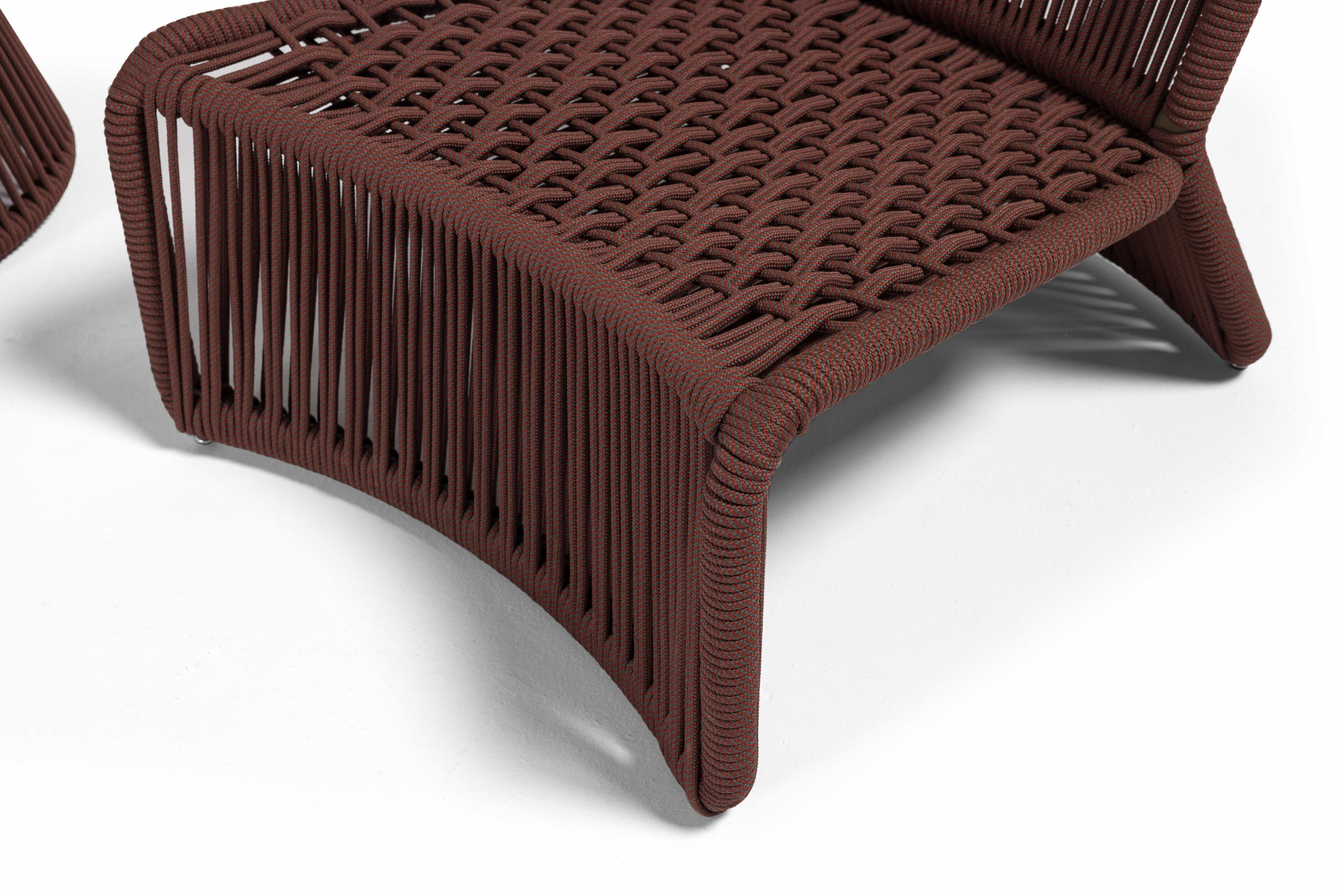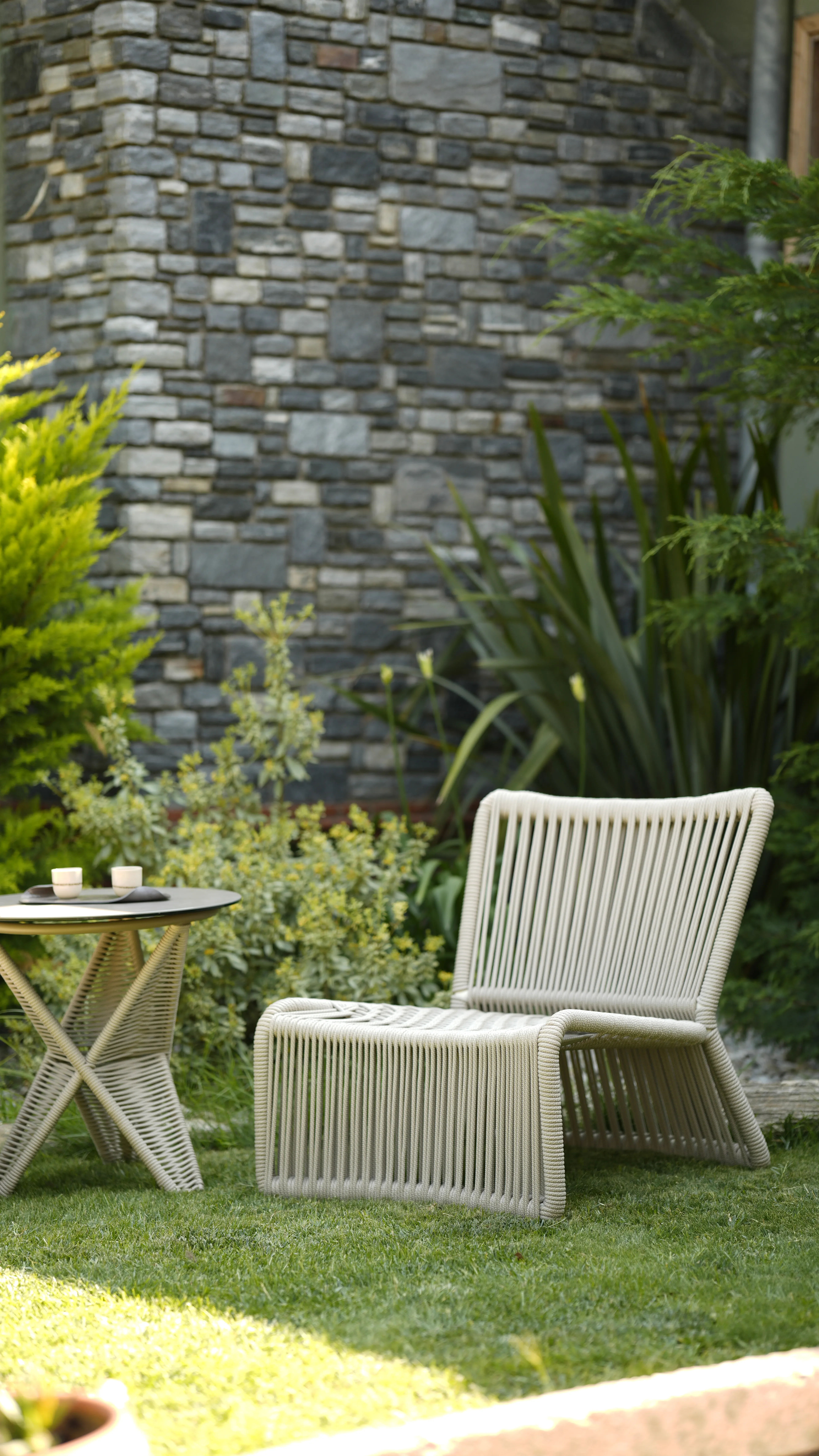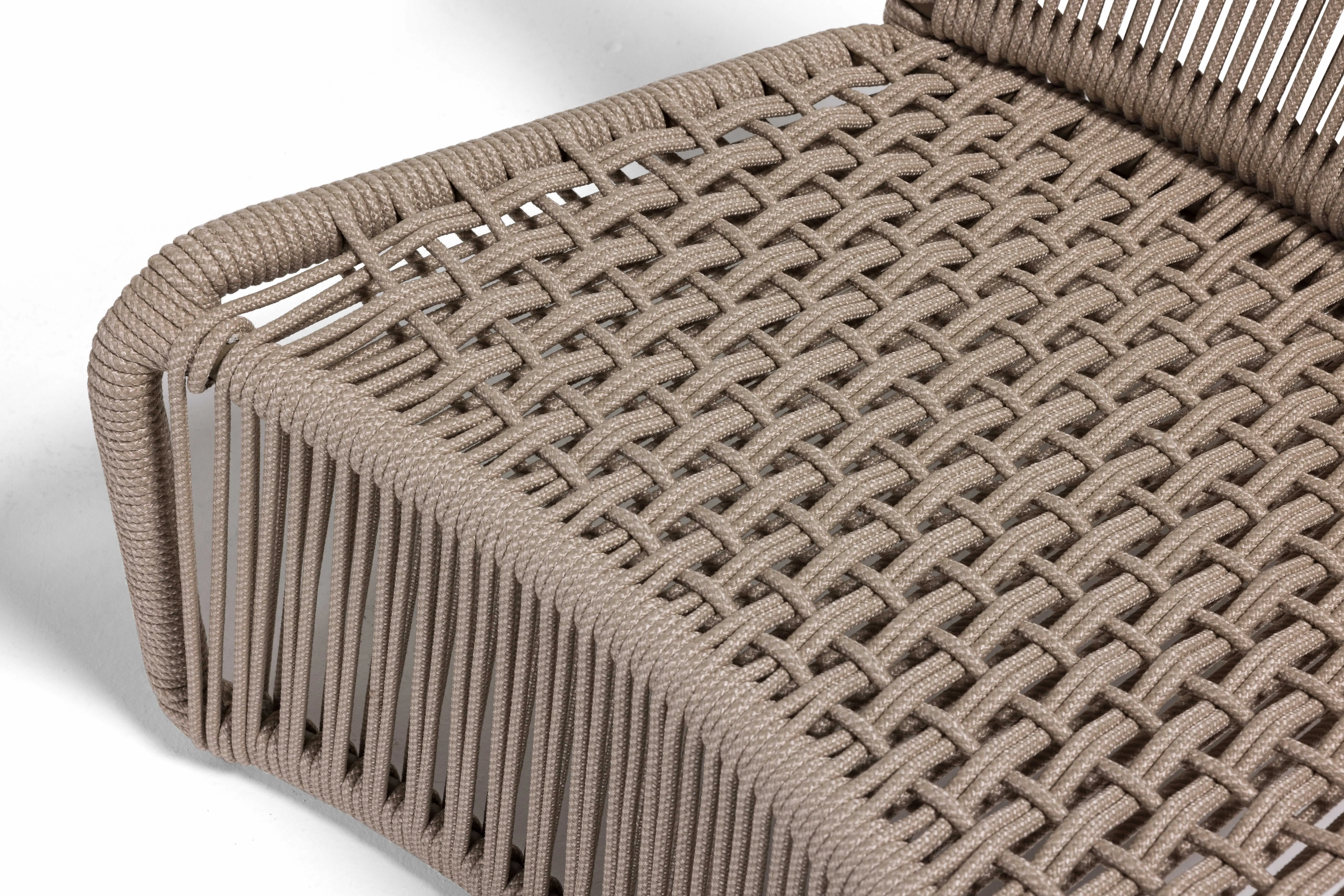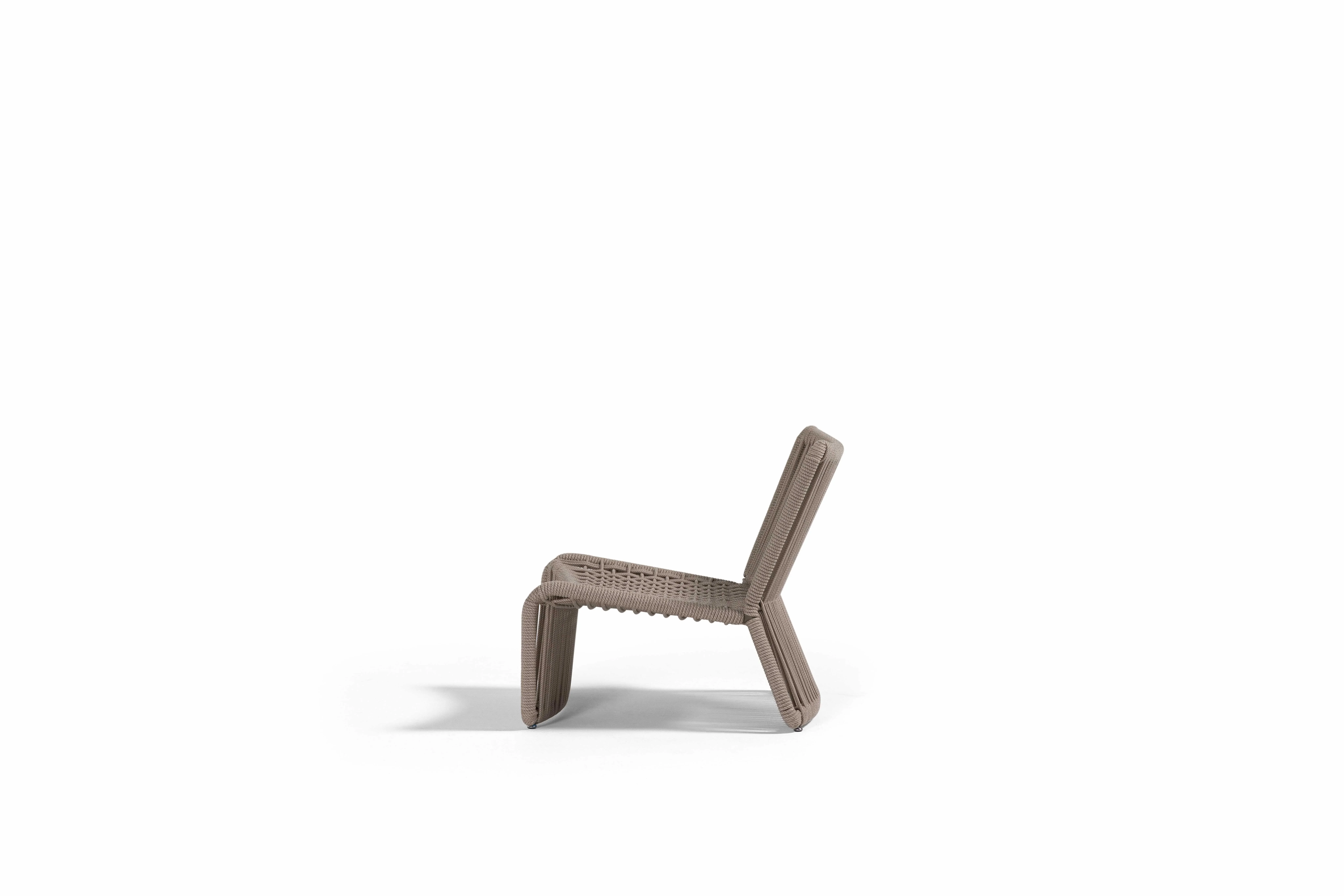 Bali, sahil hattının rahatlığını teras ve bahçelere taşıyan hafif, akışkan bir yorumdur. UV korumalı el örgüsü rope, formun karakterini belirler; oturumda bedeni yumuşakça kavrarken, dışarıdan bakıldığında çizgi gibi temiz bir silüet etkisi yaratır. İnce ama dayanıklı iskelet yapısı, zeminde adeta süzülüyormuş gibi duran bir hafiflik hissi verir.